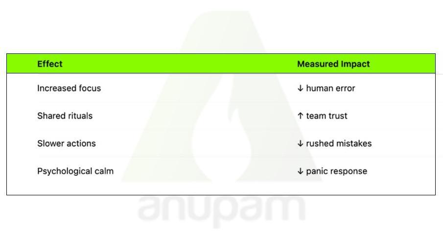 - Teams that share rituals report higher trust and cohesion, even if beliefs are irrational